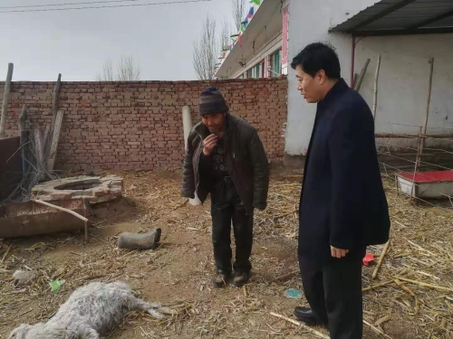 圖為郭建峰查看困難戶(hù)羊圈
