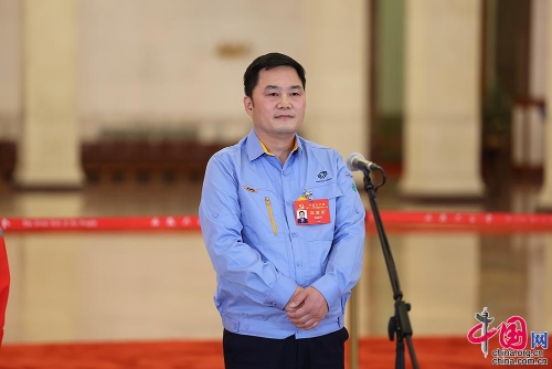 10月22日,二十大“黨代表通道”第二場(chǎng)采訪(fǎng)活動(dòng)在人民大會(huì )堂舉辦。圖為中國兵器西北工業(yè)集團研究院試制分廠(chǎng)鉗工高級技師張新停。中國網(wǎng)記者 董寧 攝
