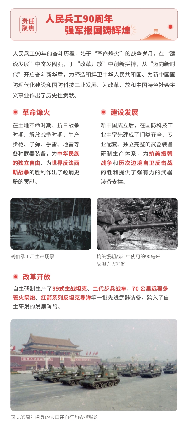 近日,兵器工業(yè)集團正式發(fā)布第十三份年度社會(huì )責任報告——《中國兵器工業(yè)集團有限公司2021年社會(huì )責任報告》,以“用心守護和平、用力爭創(chuàng )一流、用情溫暖社會(huì )”為主題,從恪守強軍首責、服務(wù)經(jīng)濟建設、共創(chuàng )美好生活三個(gè)維度,向社會(huì )全面披露2021年度履責實(shí)踐和履責業(yè)績(jì)?!秷蟾妗愤B續第三年獲得中國企業(yè)社會(huì )責任報告評級專(zhuān)家委員會(huì )“五星佳”評級,兵器工業(yè)集團成為軍工行業(yè)唯一連續11年獲得五星及五星佳最高評級的企業(yè)。 一圖解碼兵器工業(yè)的“責任力量” |